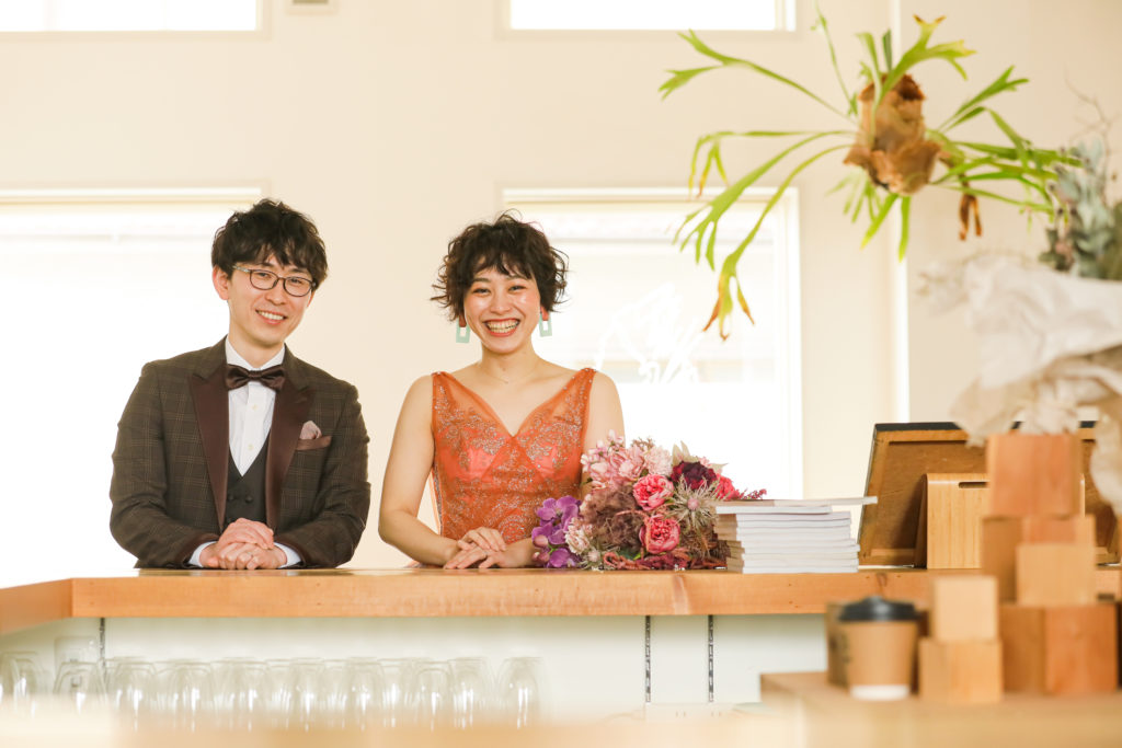 おふたりが出逢われたカフェでの撮影。カフェもオシャレな上に出逢い方までオシャレなおふたり♫