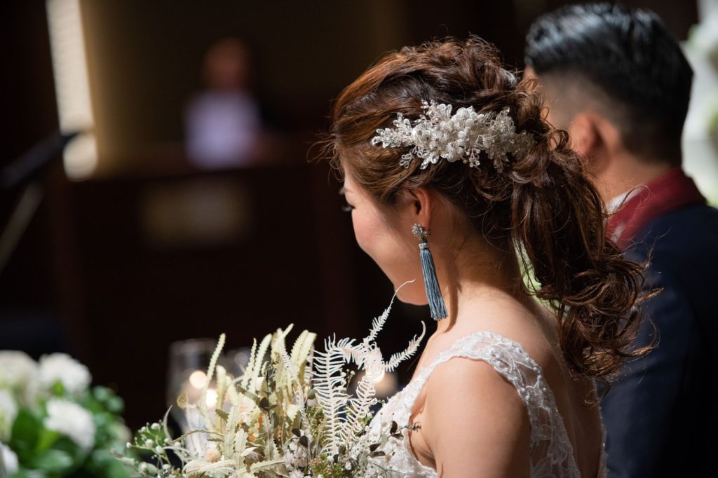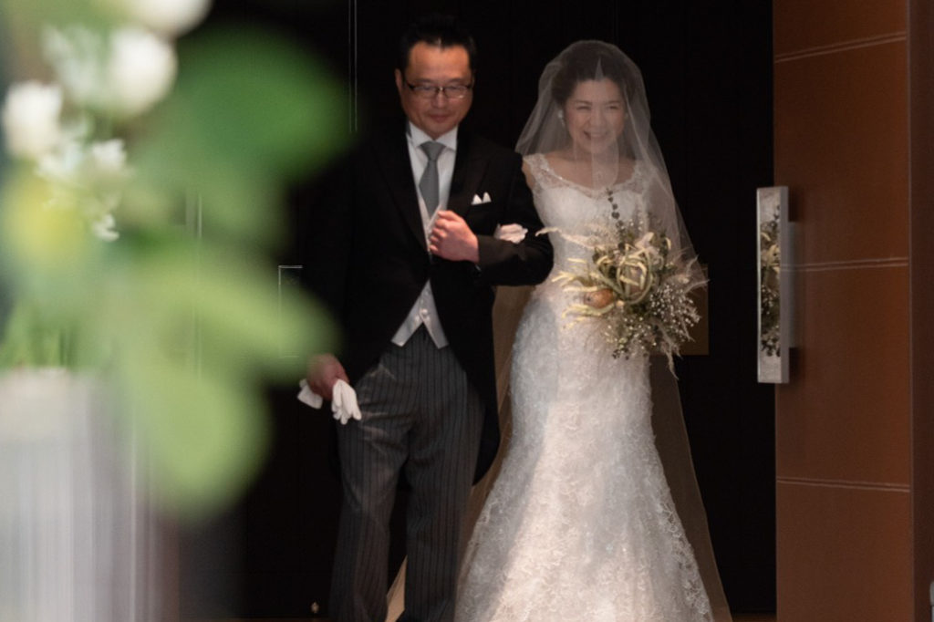 お打ち合わせのときから、新婦様が「バージンロードをお父さんと歩くことが照れくさい」そうおっしゃっていました。当日、そんな気持ちを知りながら私たちも見守っていましたが、、なんと新婦様よりお父様のほうがかなり緊張され、照れくさそうにする姿を見ました。なんだかそのとき“結婚式っていいな”シンプルにそう思えた瞬間でした。